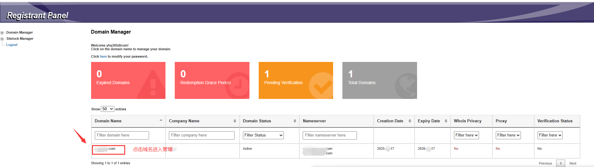 3. 登录面板后 点击域名